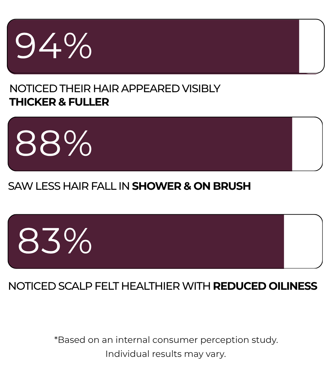 Most users notice their scalp feels refreshed immediately thanks to the cooling menthol. Clinical studies show visible improvements in hair thickness within 2 weeks, with continued improvement over 2-3 months of daily use.
